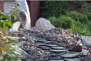 Durch Gebrauch von Felssteinen, Sand, Wasser und Pflanzen wird den